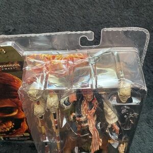 Cannibal Jack Sparrow action figure with feather scepter and pistol pikes. Includes skull and base. Very rare to find and still in box. Little damage to box otherwise never been opened.