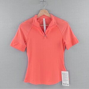 RARE! NEW Lululemon Short-Sleeve Shirt Sz. 6 - Sunny Coral *Nulux Half-Zip Golf