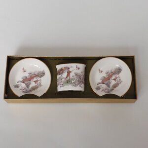 RARE Royal Worcester 51 Three Piece Set In Original Box GAME BIRD PHEASANT Cigarette Holder Ashtray Dish