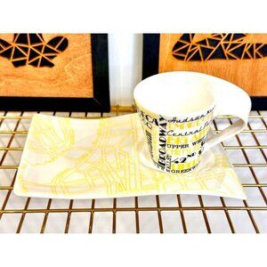 RARE Set of 4 Villeroy & Boch New Wave Cities Espresso Cups & Plates Duos 2013