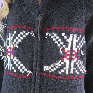 RARE TNA ARITZIA Black Wool Alpaca Shawl Collar Aztec Navajo Zip Up Sweater Coat
