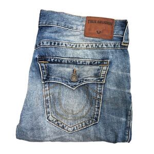 RARE True Religion Jeans Shorts Size 38 RICKY FLAP T Blue
