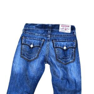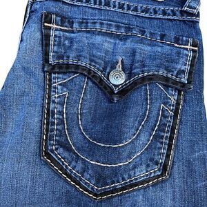 RARE True Religion Jeans Size 32 STRAIGHT Outline Big T Blue