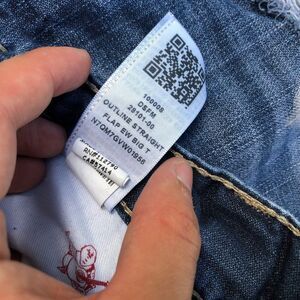 RARE True Religion Jeans Size 32 STRAIGHT Outline Big T Blue