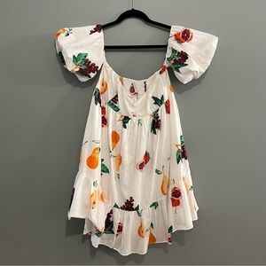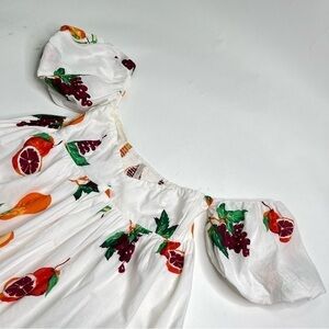 RARE Urban Outfitters White Fruit Off Shoulder Puff Sleeve Babydoll Mini Dress