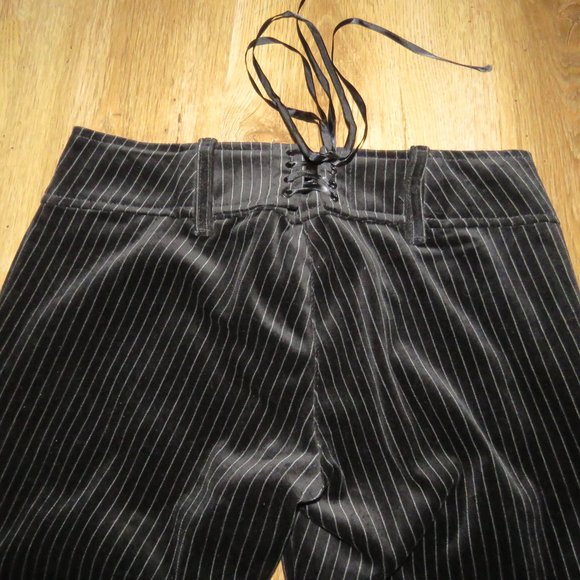 Super soft velvet material and beautiful low rise pants with details lace up back waist and front pockets. The legs are wide in the bottom