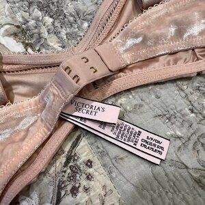 Indulge in the luxurious feel of this Victoria's Secret bra, crafted in a soft pink with intricate lace detailing. The crushed velvet fabric offers a smooth and feminine touch, while the demi-cup design provides a flattering fit and light support. Elevate your intimate collection with this elegant piece, perfect for special occasions.