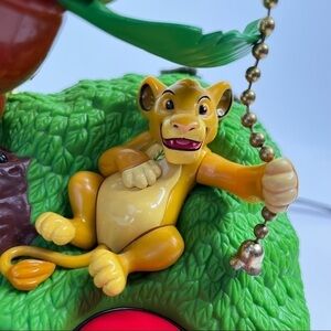 RARE ITEM! Vintage 1994 Disney Lion King animated talking singing lamp with a Simba crest plate on the front. Push the big red button to turn the lamp on - Simba pulls the chain to turn the lamp on and off while Pumba fans him. Plays "Hakuna Matata" by Elton John when the light is turned on or off. Sound has on/off feature. Uses a 40-75 Watt light bulb (included). In amazing working condition for being a vintage item. Sparkling clean item! There are only a few flaws; the leaf stem is broke off from Pumba's mouth (can not tell unless looking up from the bottom of Pumba's mouth), the bottom fabric trim is missing from the bottom of the lamp shade and there are a few creases in the lampshade. Please see all photos for details and measurements. See video for song and working condition. Such a cute fun piece for any kids room, playroom or for any Disney lover collector.