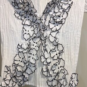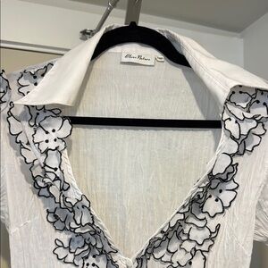 RARE Vintage Chic White Blouse with Black Accents Flowers