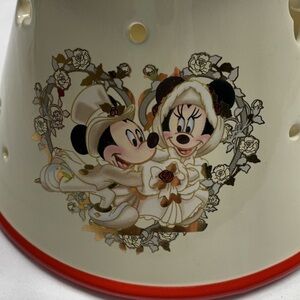 RARE Vintage Disney Victorian Mickey and Minnie Mistletoe Kiss Ceramic Jar Candle Lamp Shade Set