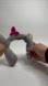 - Accented with a tiny magenta pink plush hat in the middle with a baby blue stain ribbon around it
