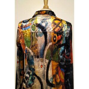 RARE!! Vintage Dolcezza Simply Art Artsy Velvet Painting Print Button Up Shirt
