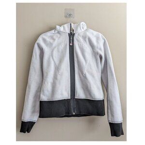 Good ol' vintage lulu, constructed in quality stitch and structured cozy fit, with the emergency hair tie logo pull and fuzzy logo on the hood. Ribbed cuffs and bottom hem. Zipper garage at top. Unique little lulu logos hidden in the flowers.