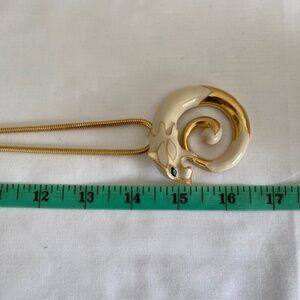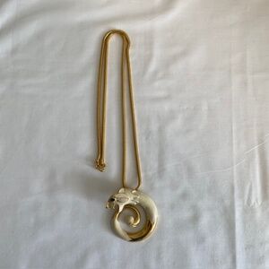 Stunning and very rare cream enamel panther, big cat pendant necklace.
