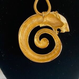 RARE Vintage PANETTA Gold Tone Enamel and Green Rhinestone Panther Necklace