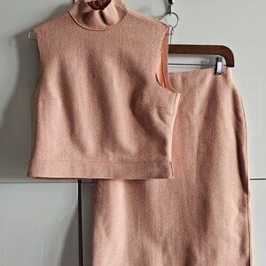 RARE Vintage Wool 80s Calvin Klein MOD Peach Cropped Vest Pencil Skirt Set