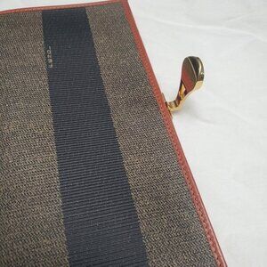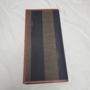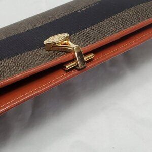 RARE Vtg FENDI Pequin Stripe Clasp Wallet Cognac