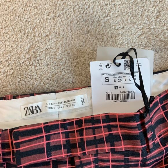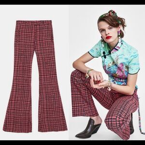 RARE ZARA studio pink checkered plaid retro bell bottom flared pants Sz S NWT