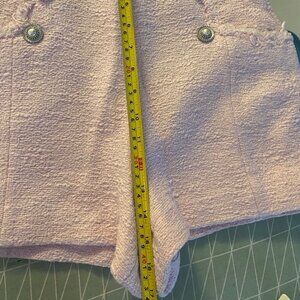 Beautiful bouclé tweed with raw edge detail, ultra high waisted shorts featuring fun buttons on the front. Looks kind of like Chanel but only at a fraction of the price! Soft pink colour is flattering to most and will match almost anything. Dress them up or down. These shorts will take you anywhere. Excellent used condition.