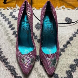 +++ RARE irregular choice shoes. Pink leather with holographic stars