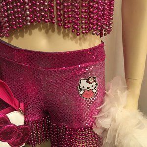 Gorgeous rare custom vinatge sequin beaded shorts and top,hundreds of beaded tassles all hand sewn into place ,adorbale hello kitty embrodery and crystal details! worn once 20 yrs ago cleaned and carefully stored the last pic just shows the silver overspray from when it was made and does not show when wearing both shorts and top are fully linned shorts have side zipper and hook and eye clousure top ties into cute bow at the back and both have slight strecth ,fits the size sm manneqiun perfectly.Always open to offers or simply hit the like button and ill send u a great one see my closet for tons more custom hello kitty treasures and pls follow me for more to come daily!
