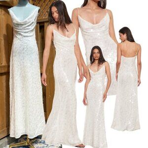 🆕 RAT & BOA 🧿 NWOT Evangeline Ivory Glistening Paillettes & Sequins Dress Sz M
