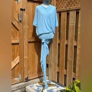 🆕 RAT & BOA 🧿 NWOT Freja Slinky Baby Blue Tie-Waist T-Shirt Mini Dress, Sz L