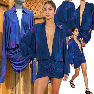 🆕 RAT & BOA 🧿 NWOT Volana Blue and Purple Floral Printed Cowl Neck Mini, Sz XS