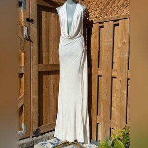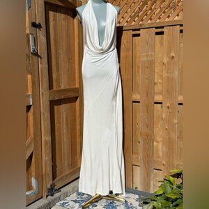 🆕 RAT & BOA 🧿 NWOT Winona White Slinky Cowl Neck Jersey Gown, Sz M