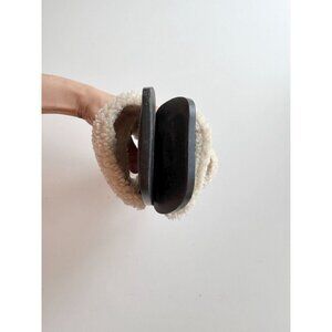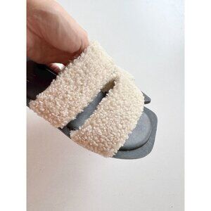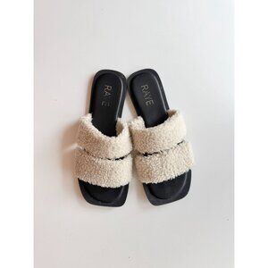 RAYE Lounge Natural Ivory Faux Shearling Fur Slides Sandals Flats, Size 5.5