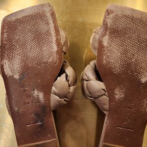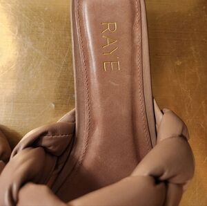 Step out in style with RAYE's chic pale pink braided slide sandals. Perfect for any casual outing, these sandals offer both comfort and elegance. Size 7.5. some minor wear on the soles and some minor scrapes on the toe and sides (see pics). Still a beautiful sandal with lots of life left.