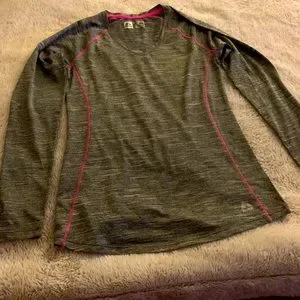 Good condition, armpit to armpit 16”, length 24.5”, color gray with pink line