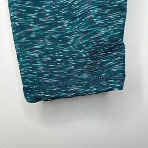Like new condition. Green with purple and white pattern. High rise. Polyester/ spandex blend. Elastic waistband. Hidden pocket in waist. Reflective logo.