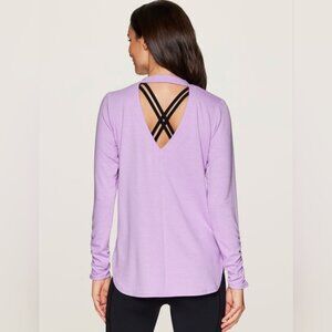 RBX No Sweat Long Sleeve Ruched Cut Out Activewear Tunic Top Sweatshirt