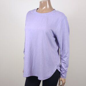 Make any workout a breeze in our No Sweat Pullover. Ultra lightweight fabric combines with an open cut-out back for breathable comfort throughout wear. Ruched sleeves add a fashionable touch to your look, and a classic crew neckline is complemented by side slits and relaxed fit for easy layering over a sports bra or under your favorite denim jacket. From the yoga studio or running track to lunch with friends, effortlessly transition throughout your day in style in this versatile long sleeve top.