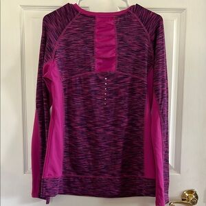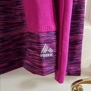Experience the perfect blend of style and performance with this RBX long sleeve tee. Featuring a striking purple and black heathered pattern, this fitted top is designed for both comfort and functionality. Ideal for workouts, its moisture-wicking fabric ensures you stay dry and comfortable. Excellent condition, size Large.