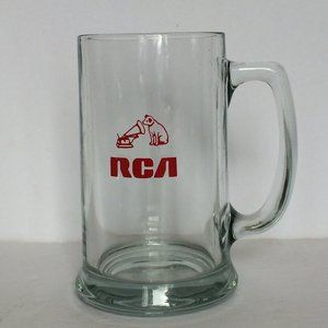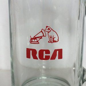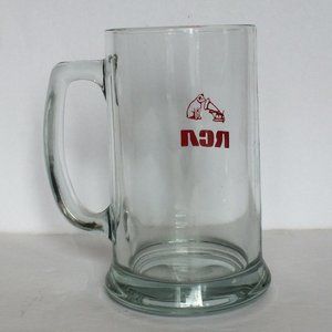 RCA Beer Mug Glass Stein Clear Handled Red Logo Dog Print 12 oz