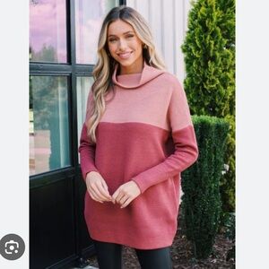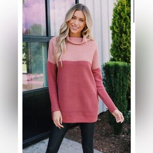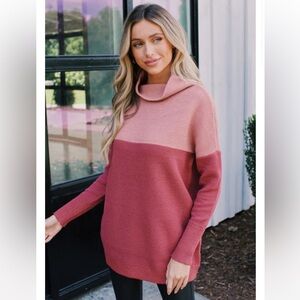With a cozy funnel neck, dropped shoulder, and ottoman style shape, this oversized RD Style Nancy Colour Block Sweater is an easy-wear essential with leggings or pleather pants.5