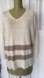 VGUC! 9/10 condition, no noticeable flaws! Stay cozy and stylish with this elegant V-neck sweater. Featuring a chic cream and brown bottom wide stripes design, it's perfect for any occasion.