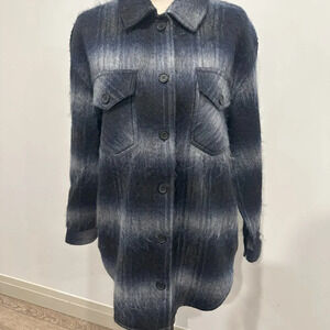 RDI Plaid Jacket Shirt Heavy Shacket Button Front Pockets Womens Small Oversized Blue Fuzzy Original Price $150 NWOT