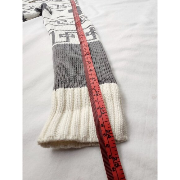 RDS Red Dragon Hooded Sweater White Gray Cotton Knit Zip-Up Tribal Pattern XS