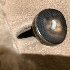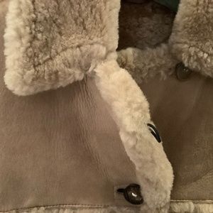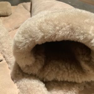Craftsman handmade with love in England,so velvety and thick.Polden Sheepskin Company is making very high quality coats,rugs,vests,hats,etc.Buttons are designed as cuff links with the rubber ,so can be very fast put on boy/ girl side.see last picture.
