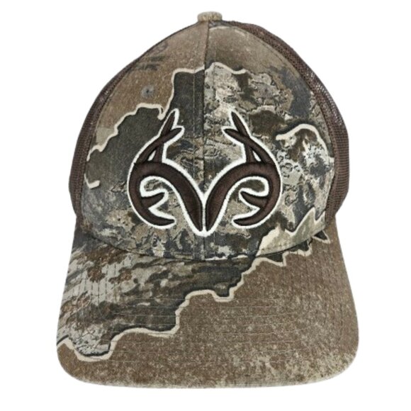 REALTREE Snapback Outdoor Cap Trucker Hat Classic Cap Brown Camo Mesh Antlers