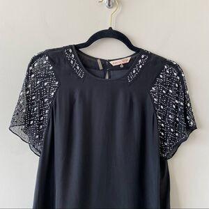REBBECA Taylor -Silk Rhinestone Sleeve/Neckline Detail Dressy Blouse