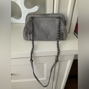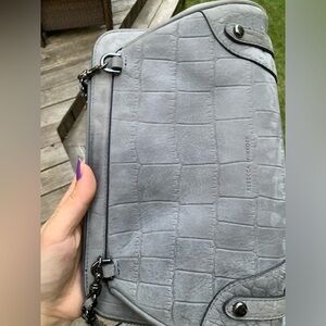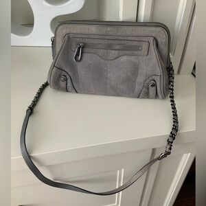 REBECCA MINKOFF Croc Embossed Grey Soft Leather Crossbody Purse LIKE NEW RARE!