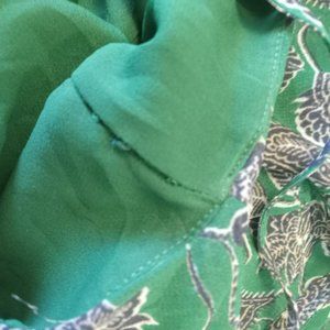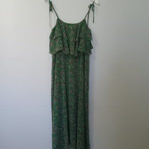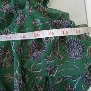 Beautiful Rebecca Minkoff floral green dress. With tie straps and ruffled top. Gently loved and in good condition. Minor wear in the seems under the arms (see photo), not notable when worn.
