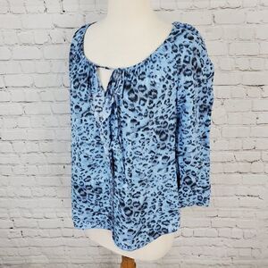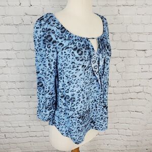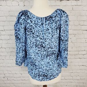 REBECCA TAYLOR Blue Chaetah Print Flowy Blouse 0