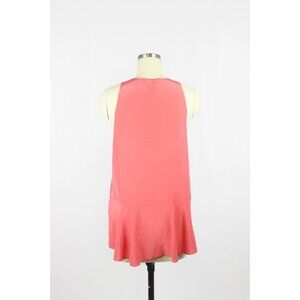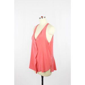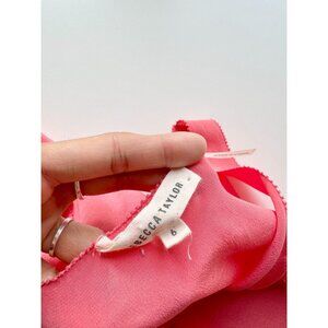 REBECCA TAYLOR Coral Pink Silk Crepe Cascade Ruffle V-Neck Blouse Top, Size 6