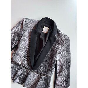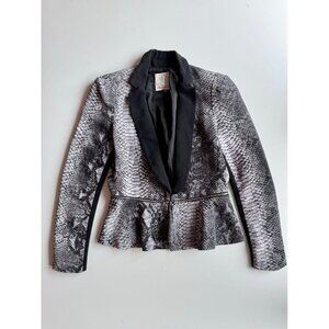 REBECCA TAYLOR Grey Python Snake Print Silk Crepe Peplum Blazer, Size 2