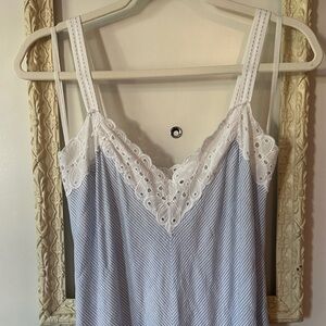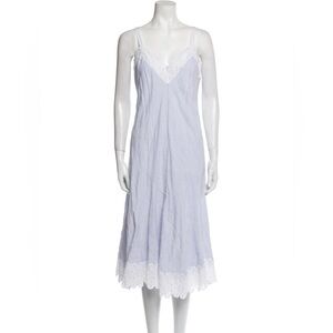 Soft stripes meet femme lace trim on this lightweight cotton dress. It's easy lingerie-inspired silhouette, finished with a tied waistline, looks laid-back with sneakers or polished with heels.